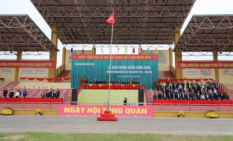 Sáng 4/3, tại Sân vận động Trung tâm Văn hóa xã Vĩnh Tường, Điểm giao nhận quân số 2 – Ban Chỉ huy KVPT 4 – Vĩnh Yên (tỉnh Phú Thọ) phối hợp với xã Vĩnh Tường long trọng tổ chức Lễ giao nhận quân năm 2026, tiễn 690 thanh niên ưu tú của 11 xã (trong đó 606 công dân thực hiện nghĩa vụ quân sự, 86 công dân thực hiện nghĩa vụ tham gia Công an nhân dân) gồm: Vĩnh Tường, Vĩnh Phú, Vĩnh An, Vĩnh Hưng, Vĩnh Thành, Thổ Tang, Liên Châu, Nguyệt Đức, Tề Lỗ, Yên Lạc, Tam Hồng lên đường làm nhiệm vụ bảo vệ Tổ quốc.