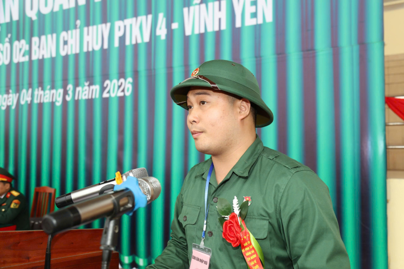 Thay mặt 690 thanh niên nhập ngũ đợt này, tân binh Nguyễn Tiến Dũng (xã Vĩnh Tường) bày tỏ quyết tâm phát huy truyền thống quê hương, sẵn sàng nhận và hoàn thành tốt mọi nhiệm vụ; tích cực học tập, rèn luyện, xứng đáng với danh hiệu cao quý “Bộ đội Cụ Hồ”, góp phần xây dựng Quân đội nhân dân và Công an nhân dân cách mạng, chính quy, tinh nhuệ, từng bước hiện đại.