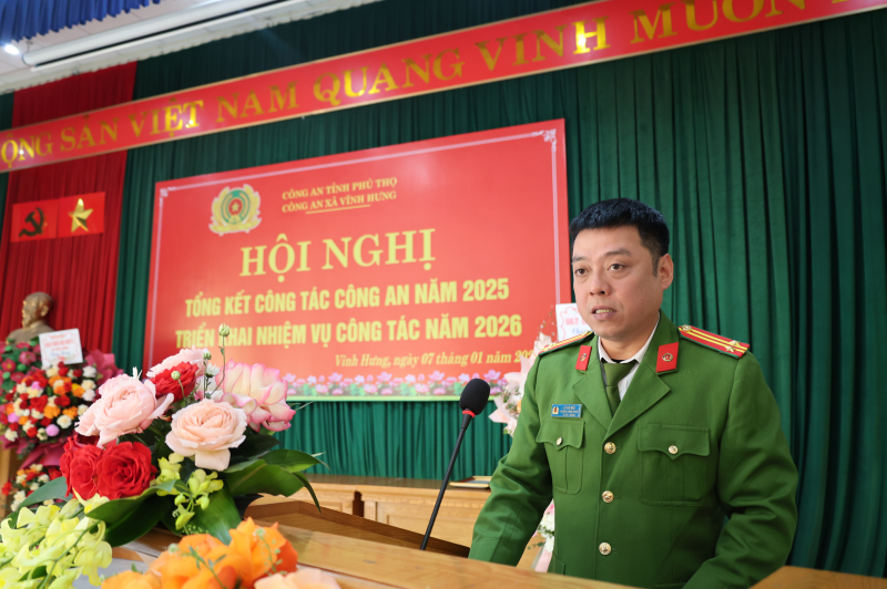 Chiều 8/1/2026, Công an xã Vĩnh Hưng tổ chức Hội nghị tổng kết công tác Công an năm 2025 và triển khai nhiệm vụ năm 2026. Dự hội nghị có Thượng tá Đỗ Đức Cường- Trưởng phòng An ninh mạng và phòng, chống tội phạm sử dụng công nghệ cao (PA05) tỉnh; đồng chí Trương Đức Tuấn – Bí thư Đảng ủy, Chủ tịch HĐND xã; đồng chí Nguyễn Thành Hưng – Phó Bí thư Đảng ủy, Chủ tịch UBND xã; đồng chí Lê Hải Bắc- UVBTV, Trưởng Công an xã; lãnh đạo UB MTTQ; trưởng các phòng, ban của Đảng ủy, UBND xã cùng toàn thể các chỉ huy và cán bộ công an xã Vĩnh Hưng.