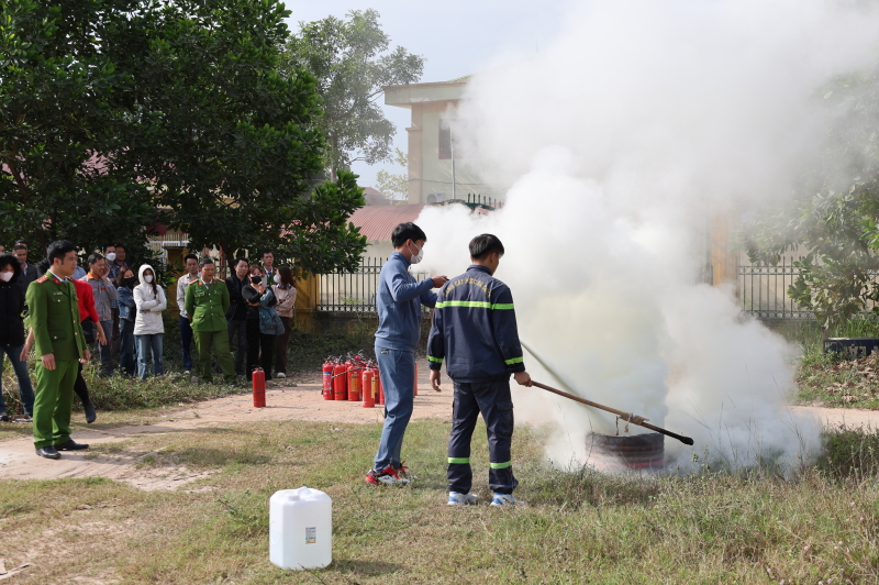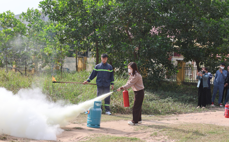 Cán bộ Phòng Cảnh sát PCCC và CNCH hướng dẫn thực hành sử dụng bình chữa cháy