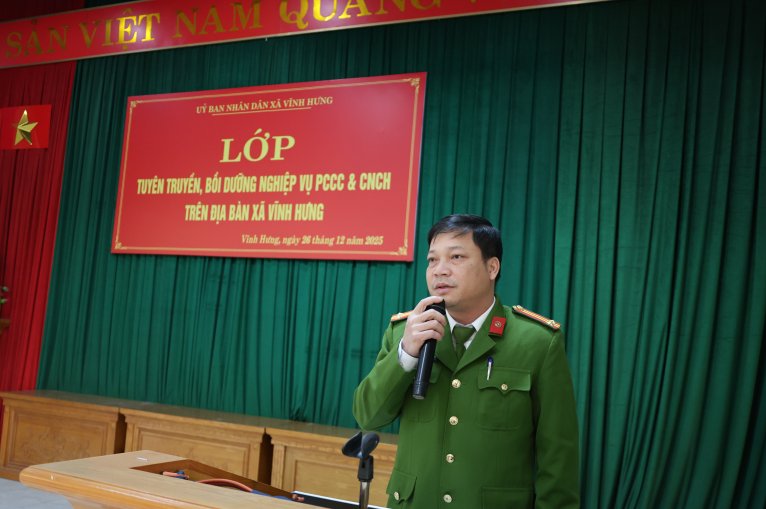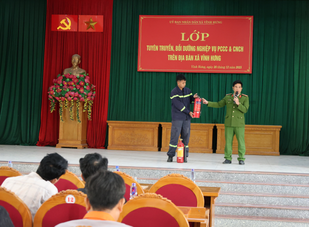 Sáng ngày 26/12, tại Hội trường Công an xã Vĩnh Hưng, Công an xã Vĩnh Hưng đã tổ chức lớp tuyên truyền, bồi dưỡng nghiệp vụ phòng cháy, chữa cháy và cứu nạn, cứu hộ (PCCC và CNCH) cho các lực lượng và người dân trên địa bàn xã.