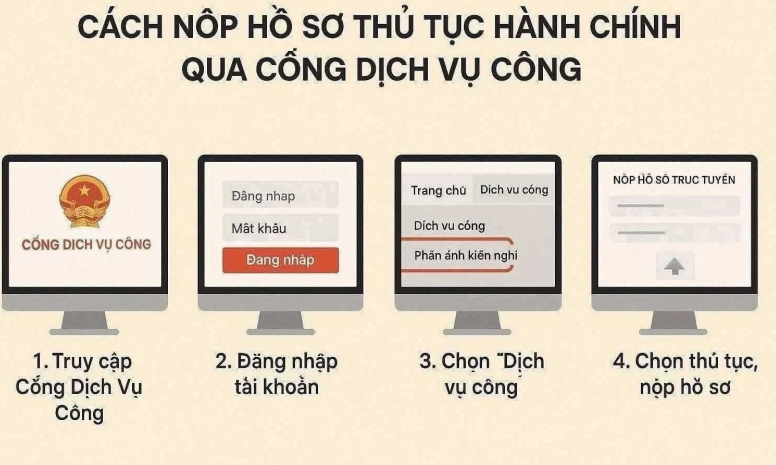 Dưới đây là hướng dẫn nộp hồ sơ thủ tục hành chính qua cổng dịch vụ công:
