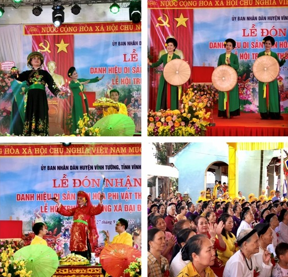 Sáng 27/9 huyện Vĩnh Tường (Vĩnh Phúc) đã tổ chức Lễ đón nhận danh hiệu Di sản văn hoá phi vật thể Quốc gia "Lễ hội truyền thống xã Đại Đồng".