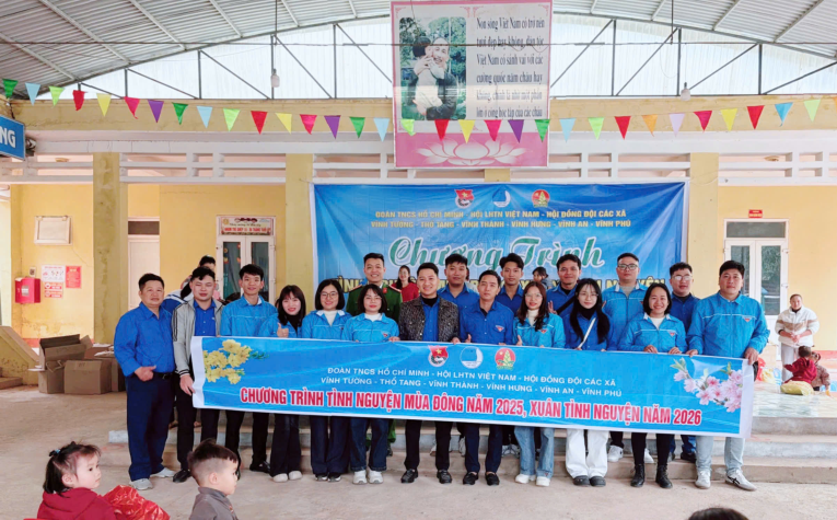 Phát huy tinh thần xung kích, tình nguyện vì cộng đồng, ngày 03 – 04/01/2026, Đoàn Thanh niên 6 xã: Vĩnh Phú, Vĩnh Tường, Thổ Tang, Vĩnh Hưng, Vĩnh An và Vĩnh Thành đã phối hợp tổ chức Chương trình “Tình nguyện mùa Đông – Xuân tình nguyện năm 2026” tại xã Đức Nhàn, tỉnh Phú Thọ.