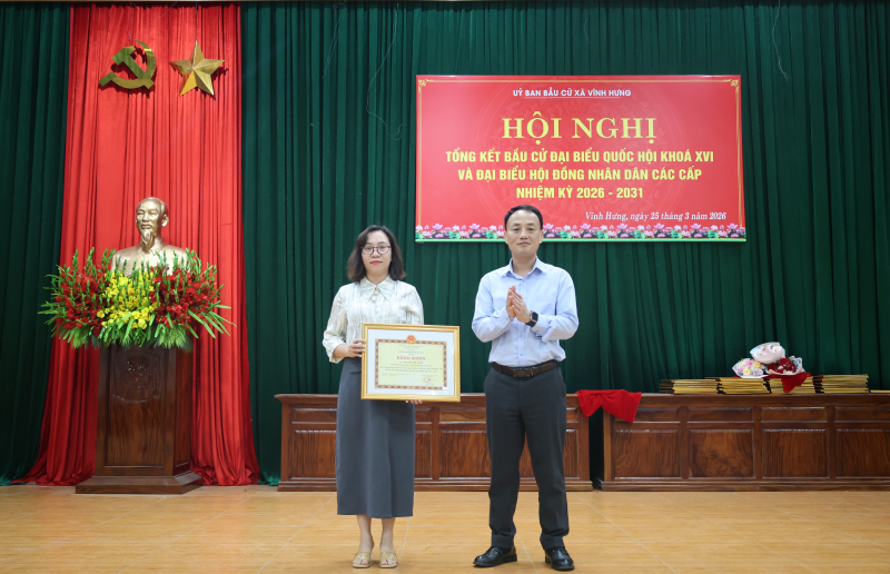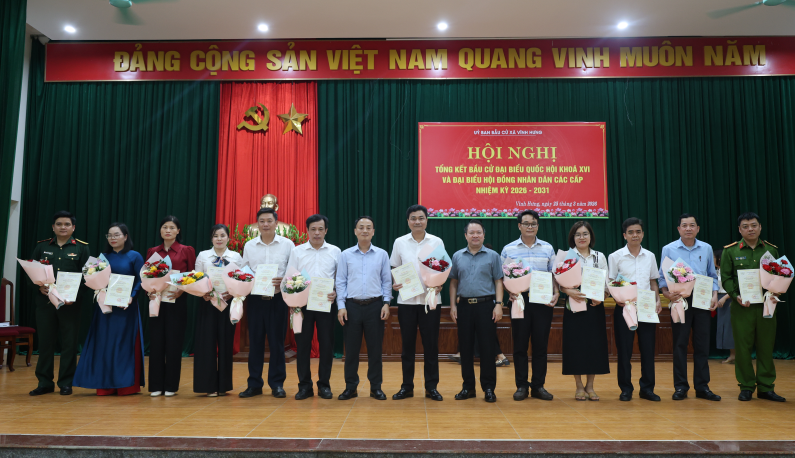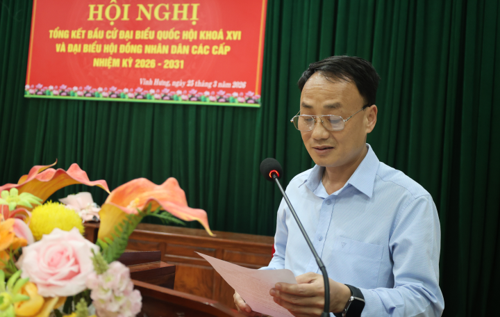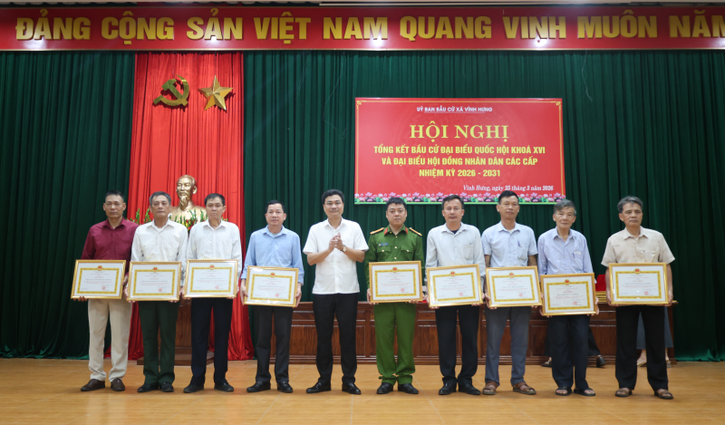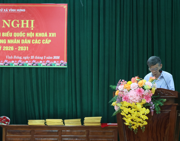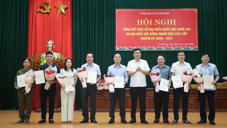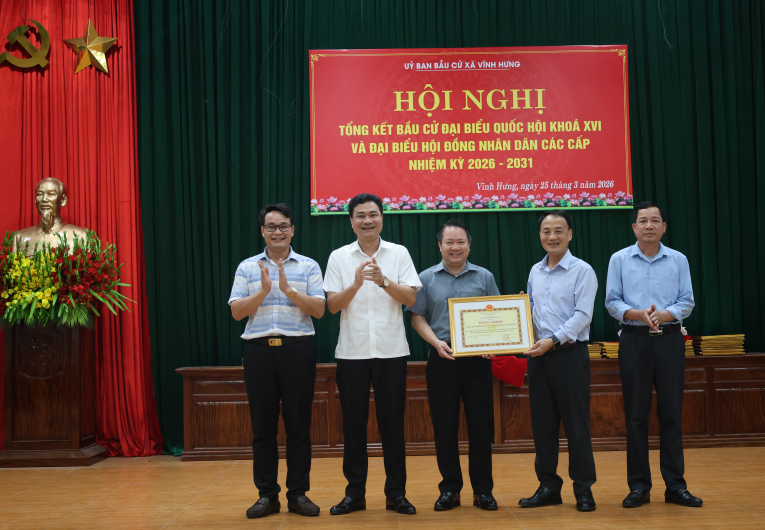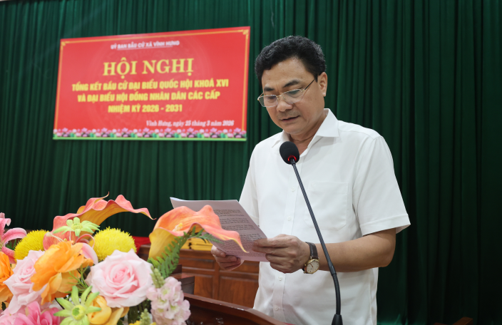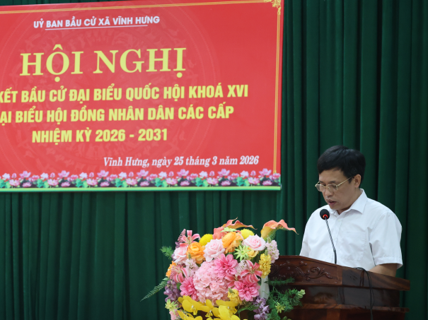 Ngày 25/3/2026, tại Hội trường Đảng ủy xã Vĩnh Hưng, Ủy ban bầu cử xã đã long trọng tổ chức Hội nghị tổng kết công tác bầu cử đại biểu Quốc hội khóa XVI và đại biểu Hội đồng nhân dân các cấp nhiệm kỳ 2026–2031.