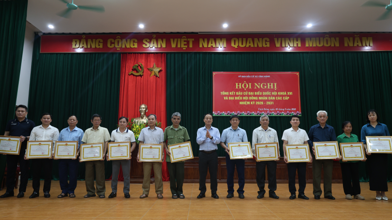 Góp phần vào thành công chung của cuộc bầu cử là sự nỗ lực không ngừng của các tập thể và cá nhân trên địa bàn xã. Tại hội nghị, Ủy ban bầu cử xã đã công bố các Quyết định khen thưởng và tổ chức trao thưởng cho các tập thể, cá nhân có thành tích xuất sắc, qua đó kịp thời động viên, khích lệ tinh thần trách nhiệm, sự tận tụy trong quá trình thực hiện nhiệm vụ.