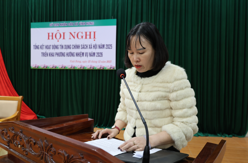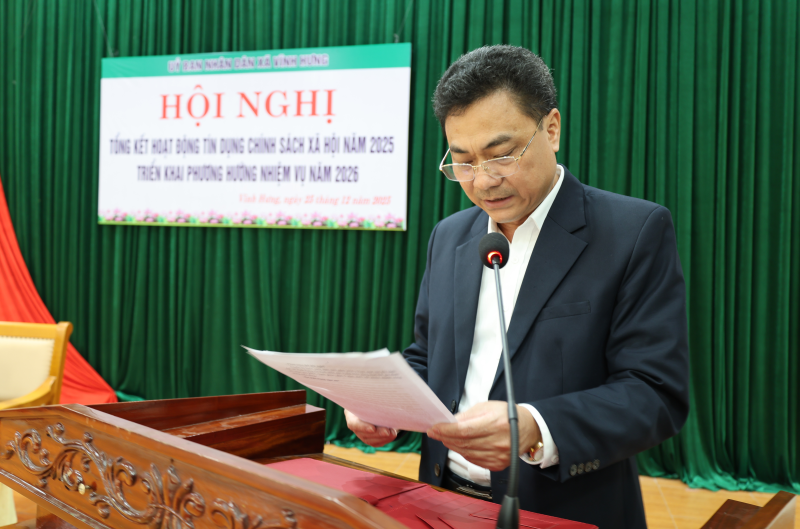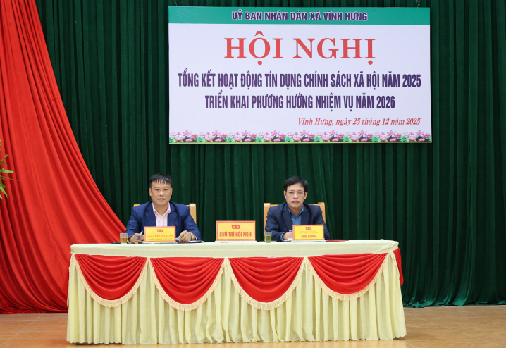 Ngày 25/12/2025, UBND xã Vĩnh Hưng tổ chức Hội nghị tổng kết hoạt động tín dụng chính sách xã hội năm 2025, triển khai phương hướng, nhiệm vụ năm 2026.