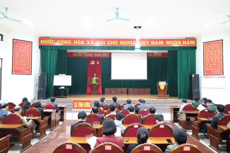 Tham dự điểm cầu xã Vĩnh Hưng có đồng chí Trương Đức Tuấn – Bí thư Đảng ủy, Chủ tịch HĐND xã; đồng chí Nguyễn Thành Hưng – Phó Bí thư Đảng ủy – Chủ tịch UBND xã; đồng chí Đặng Hà Phú- UVBTV Đảng ủy, Phó Chủ tịch Ủy ban nhân dân xã, các đồng chí trong BTV Đảng ủy, BCH Đảng ủy và lãnh đạo các phòng, ban, ngành của xã và các Đảng bộ, chi bộ trực thuộc.