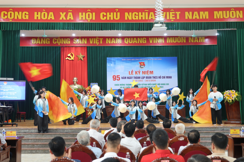 Mở đầu chương trình là các tiết mục văn nghệ đặc sắc với chủ đề “95 năm khát vọng cống hiến – Lẽ sống thanh niên” do các chi đoàn trường học và cơ sở Đoàn biểu diễn, tạo không khí vui tươi, phấn khởi, thể hiện tinh thần nhiệt huyết, sáng tạo của tuổi trẻ.