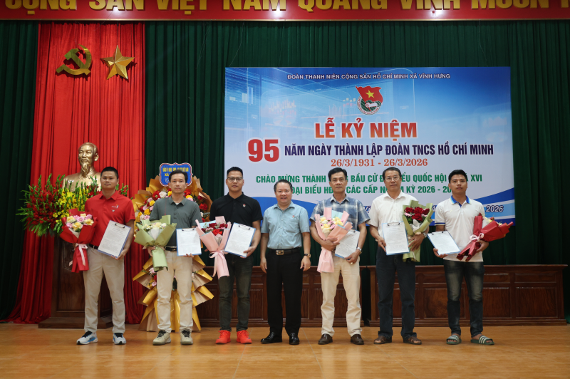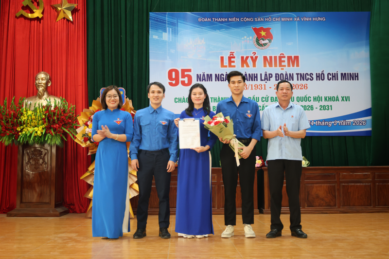 Chiều ngày 24/3/2026, Đoàn xã Vĩnh Hưng long trọng tổ chức Lễ kỷ niệm 95 năm Ngày thành lập Đoàn TNCS Hồ Chí Minh (26/03/1931 - 26/03/2026); Chào mừng thành công cuộc bầu cử đại biểu Quốc hội khóa XVI và đại biểu HĐND các cấp, nhiệm kỳ 2026 - 2031.