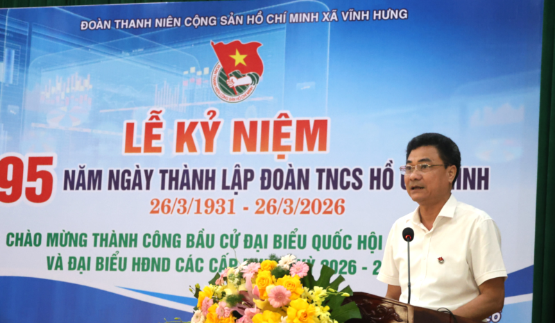 Đồng chí cũng bày tỏ mong muốn tuổi trẻ xã Vĩnh Hưng tiếp tục phát huy truyền thống vẻ vang của Đoàn TNCS Hồ Chí Minh, không ngừng rèn luyện, học tập, nâng cao trình độ, bản lĩnh chính trị, tích cực đóng góp trí tuệ và sức trẻ vào sự phát triển chung của địa phương.