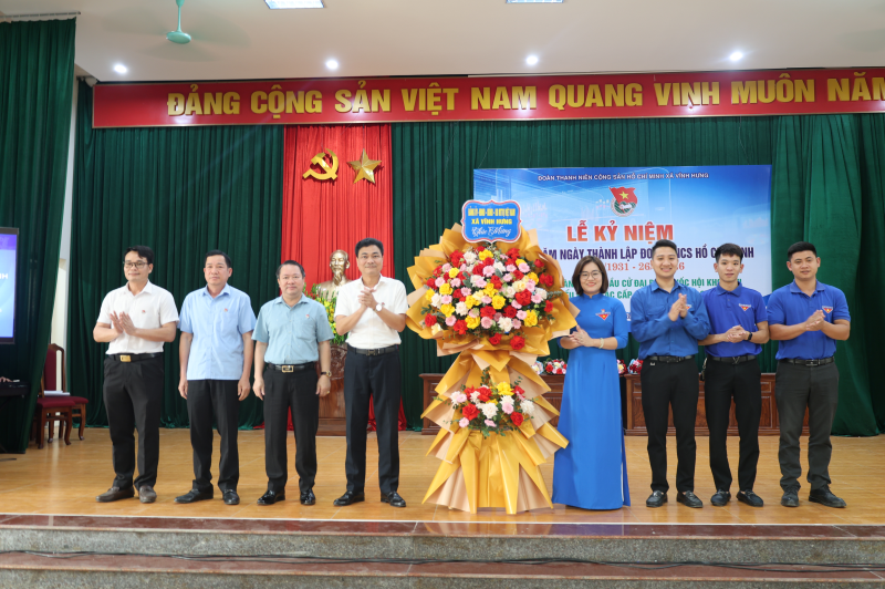 Lãnh đạo xã tặng hoa chúc mừng Đoàn thanh niên xã Vĩnh Hưng